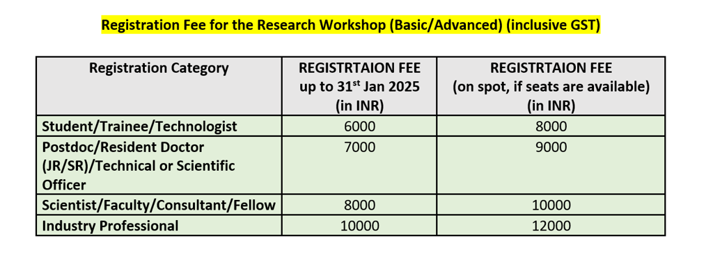 These workshops are conducted in collaboration with educational and research institutes, universities, hospitals etc all over India. International and National faculties are invited to these workshops to deliver the lectures and conduct wet labs. Since 2002, these workshops have been generously supported by government funding agencies, international societies, corporates and technology manufacturers.